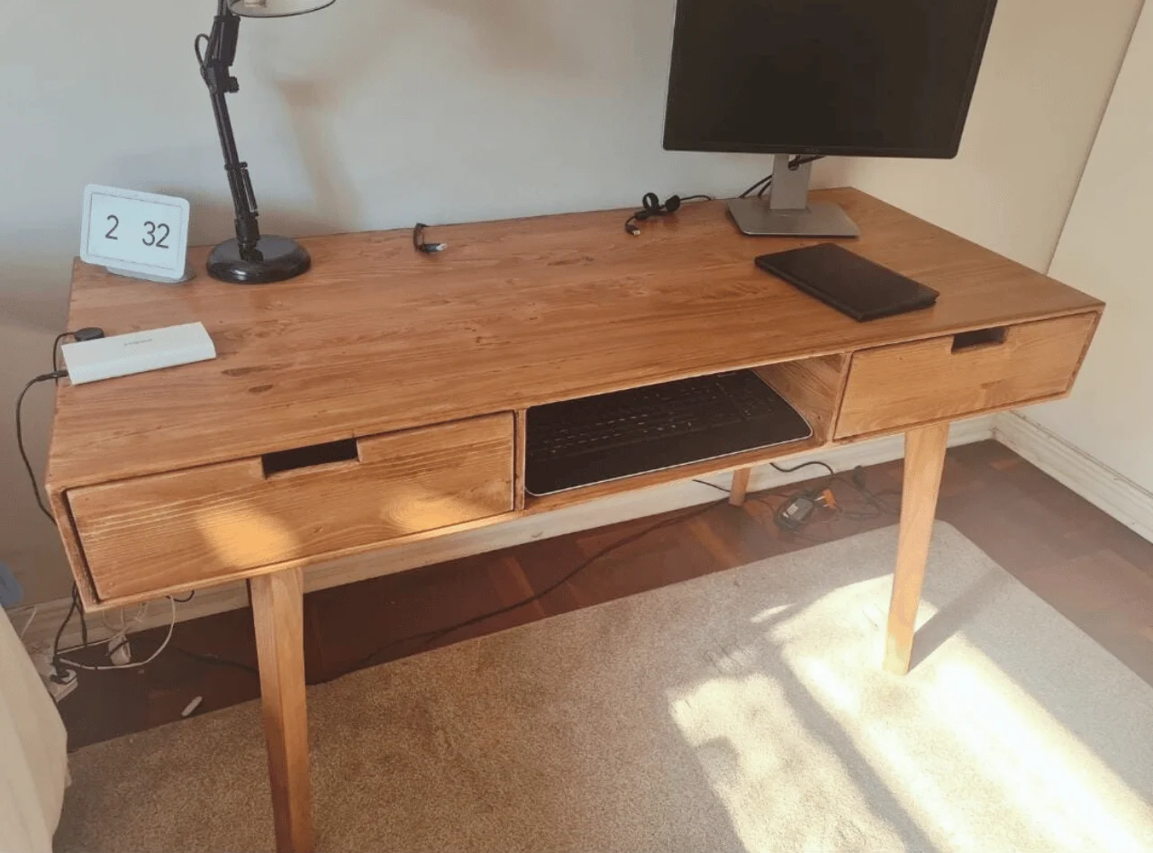 Meet The Daily Desk — a beautifully crafted workspace designed for everyday productivity. With clean lines, generous surface space, and practical built-in storage, this desk blends natural warmth with modern functionality.