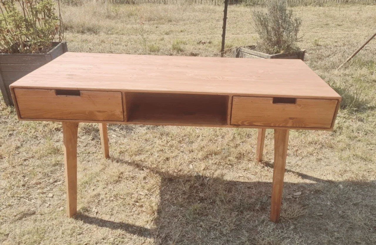 Crafted from quality solid wood, The Daily Desk features two spacious drawers and a central open shelf, perfect for keeping essentials within reach while maintaining a clutter-free workspace. Its minimalist silhouette and sturdy tapered legs make it ideal for home offices, study rooms, or creative spaces.